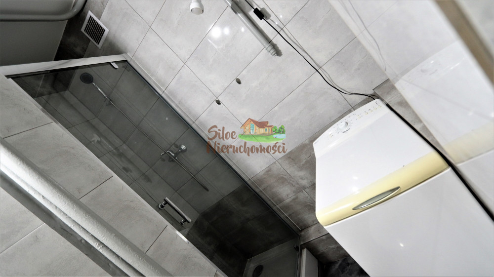 Łazienka: Kabina prysznicowa, umywalka, lustro, pralka, wc..